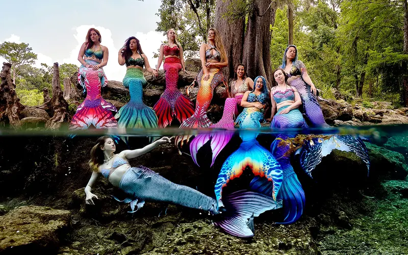 People worldwide are mermaiding - swimming with tails in beautiful waters to escape stress and have fun.